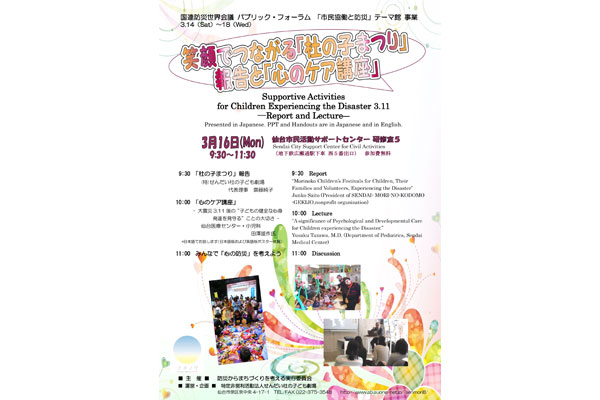 被災地支援事業「杜の子まつり」報告と小児科医による「心のケア講座」を聞き、「心の防災」を考えよう!