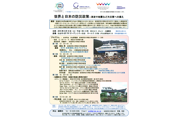 世界と日本の防災政策を津波や地震など大災害への備えの視点から皆さまと考えます