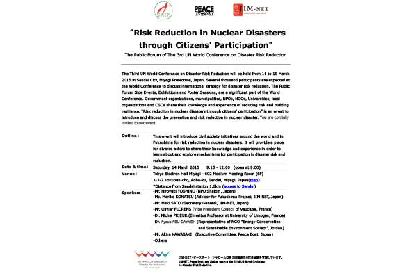 福島事故が問いかけているものに、仙台開催の国連防災世界会議の折だからこそ真摯に向き合いたい